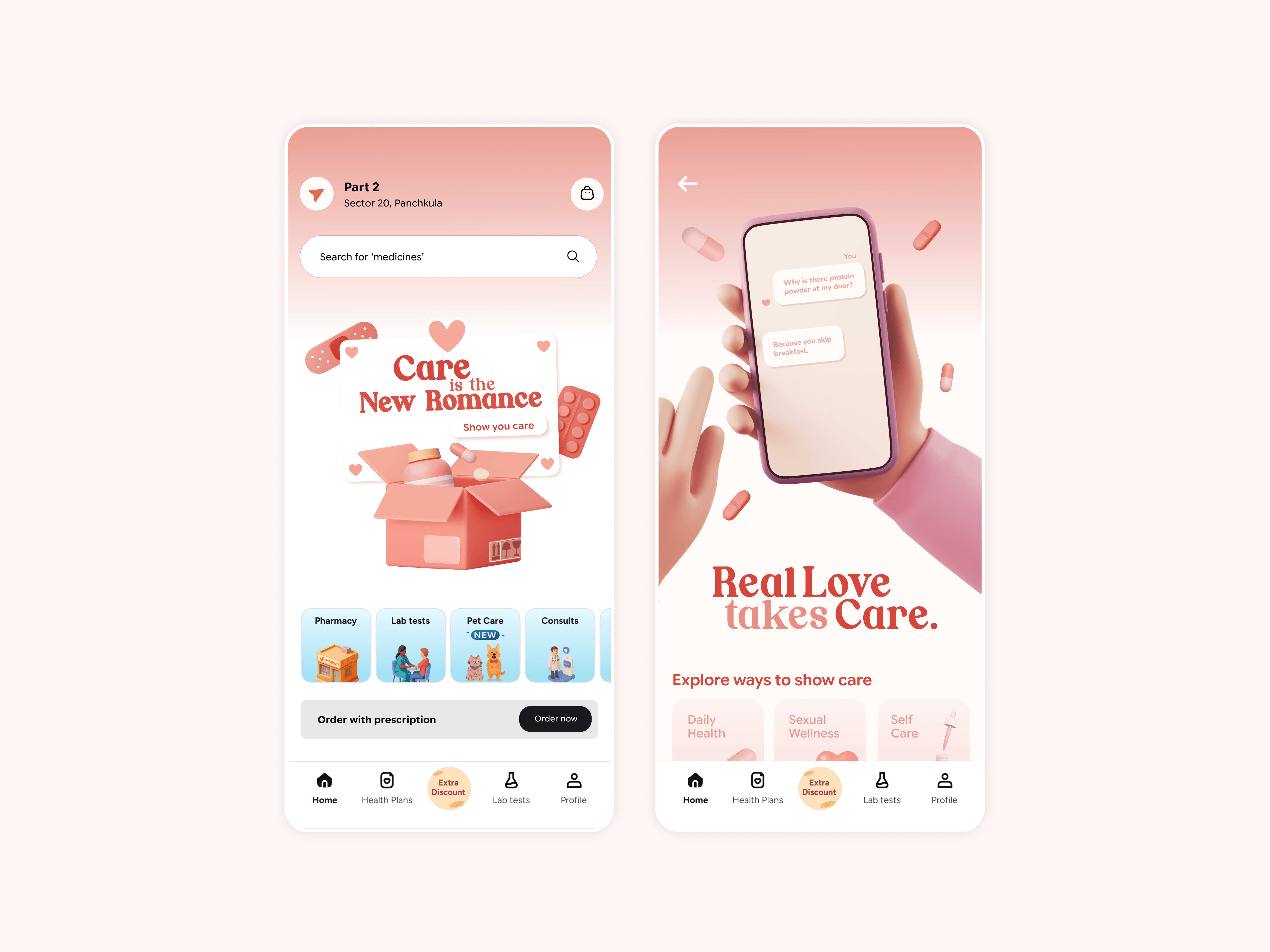 A redesign concept for Tata 1mg, built as their Valentine's campaign as part of a recruitment assignment.